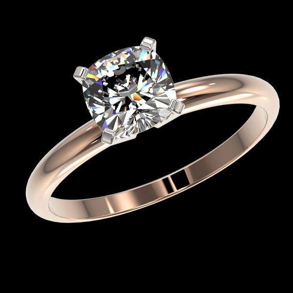 REF-297W2F -32901 ---- 1 CTW Certified VS/SI Quality Cushion Cut Diamond Solitaire Ring 10K Rose Gold ---- Luxury Designer Brand Ring Appraised at $15,850 Certificate Number US32901 10k Rose gold, Ring Size is 7, Ring measuring approx. Uniform, weighing in total approx. 3 grams. Made in the USA and is stamped 10k, Main stone 1 carat total weight containing 1 pieces of H-J color with VS/SI quality Cushion shape cut Diamond , Stone #2 carat total weight containing pieces of color with quality shape cut
