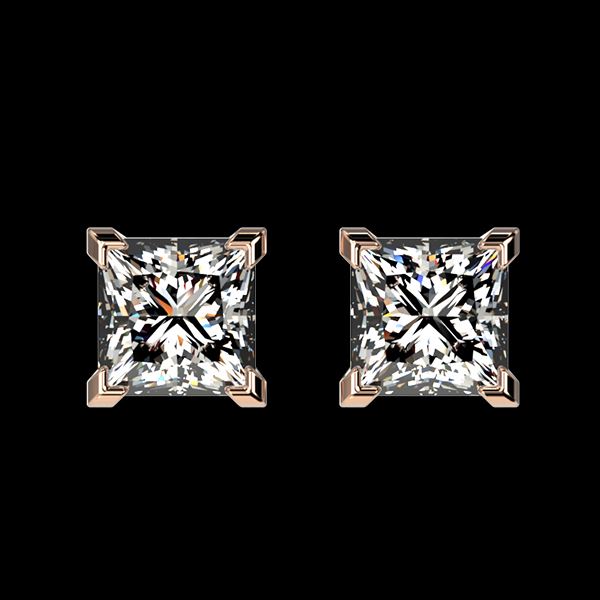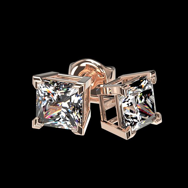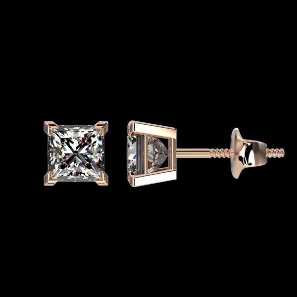 REF-147A2X -33064 ---- 1 CTW Certified VS/SI Quality Princess Diamond Stud Earrings 10K Rose Gold ---- Luxury Designer Brand Earring Appraised at $8,800 Certificate Number US33064 10k Rose gold, Earring Size is Larger, Earring measuring approx. Uniform, weighing in total approx. 2.2 grams. Made in the USA and is stamped 10k, Main stone 1 carat total weight containing 2 pieces of H-J color with VS/SI quality Princess shape cut Diamond , Stone #2 carat total weight containing pieces of color with quality shape cut