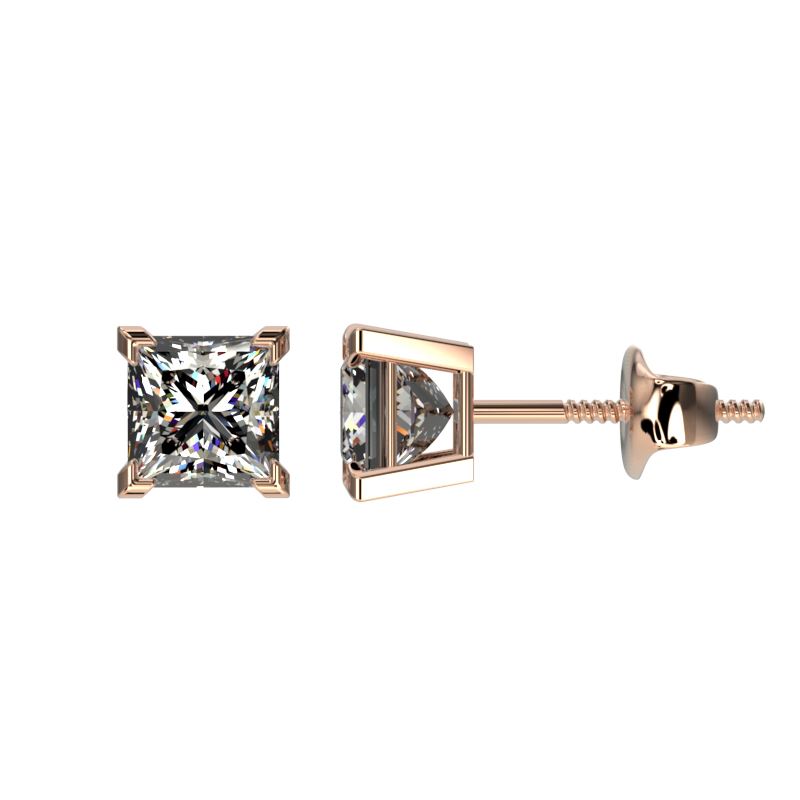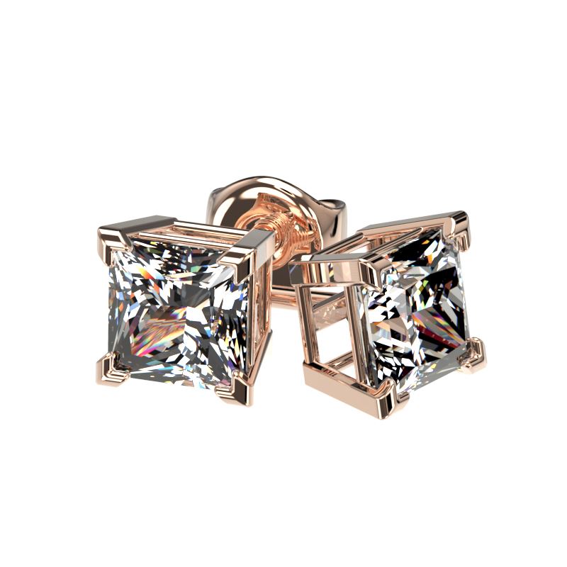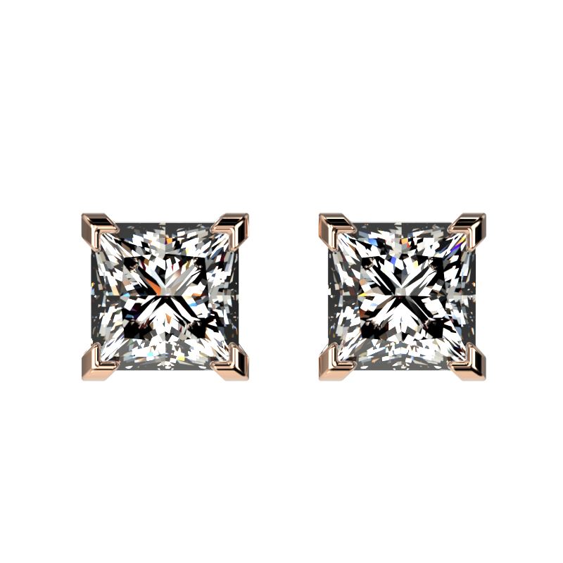 33064 - REF-147M2F ---- 1 CTW Certified VS/SI Quality Princess Diamond Stud Earrings 10K Rose Gold ---- Luxury Designer Brand Earring Appraised at $8,800 Certificate Number US33064 10k Rose gold, Earring Size is Larger, Earring measuring approx. Uniform, weighing in total approx. 2.2 grams. Made in the USA and is stamped 10k, Main stone 1 carat total weight containing 2 pieces of H-J color with VS/SI quality Princess shape cut Diamond , Stone #2 carat total weight containing pieces of color with quality shape cut