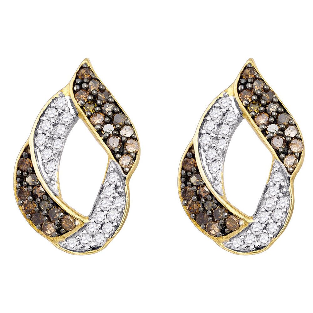 REF-52Y4X- SKU: GD72964 ---- 1 CTW Cognac-brown Color Diamond Cluster Earrings 10KT Yellow Gold