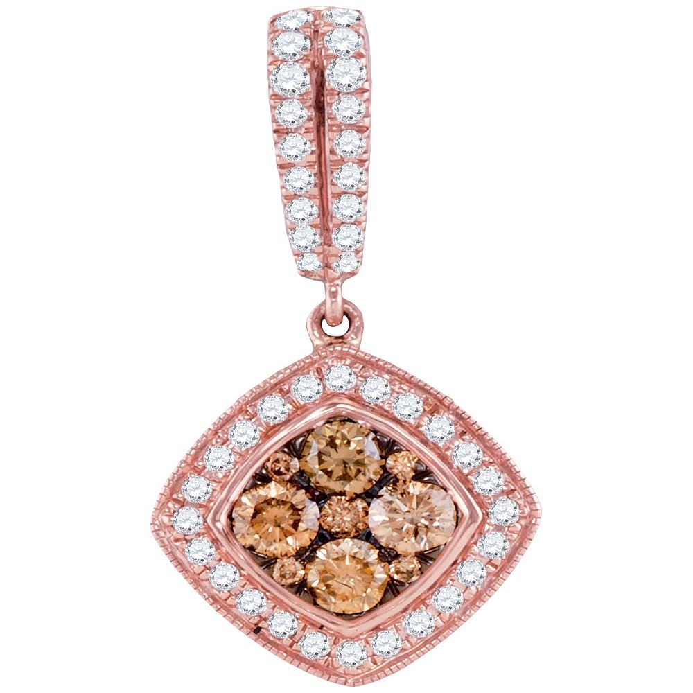 REF-97Y4X- SKU: GD95513 ---- 1 CTW Cognac-brown Color Diamond Diagonal Pendant 14KT Rose Gold