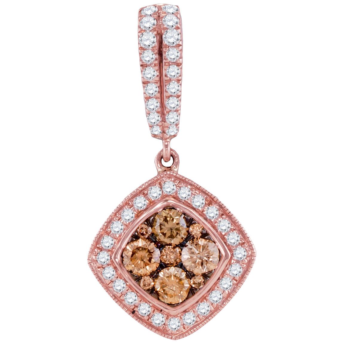REF-97Y4X- SKU: GD95513 ---- 1 CTW Cognac-brown Color Diamond Diagonal Pendant 14KT Rose Gold