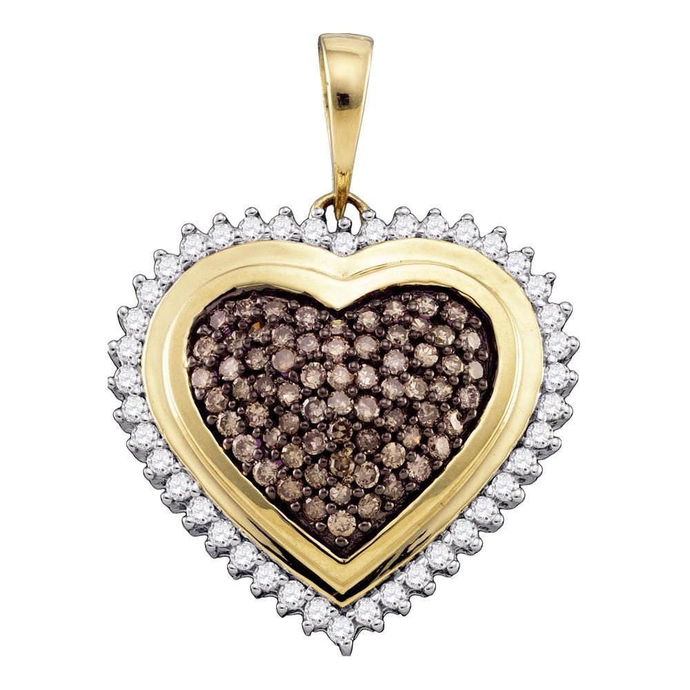 REF-67H4M- SKU: GD71988 ---- 1 CTW Cognac-brown Color Diamond Framed Heart Pendant 10KT Yellow Gold
