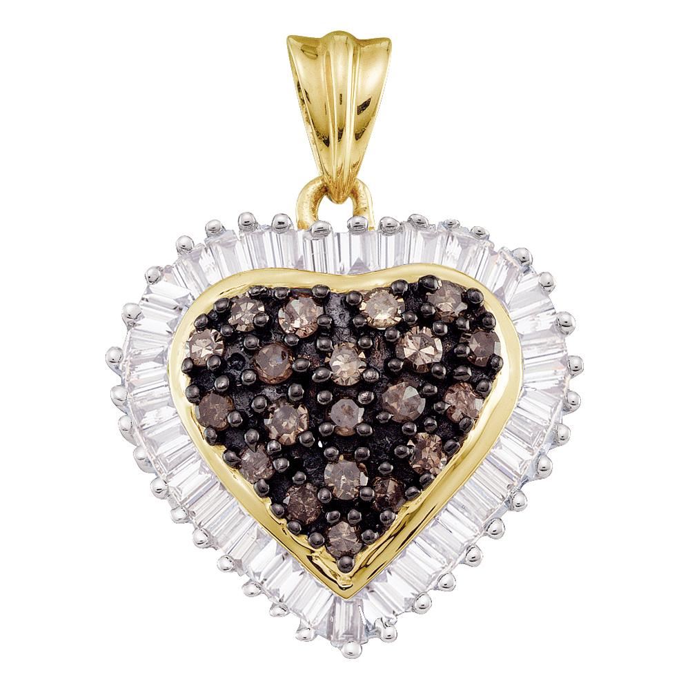 REF-40M4H- SKU: GD60231 ---- 1 CTW Cognac-brown Color Diamond Heart Cluster Pendant 10KT Yellow Gold