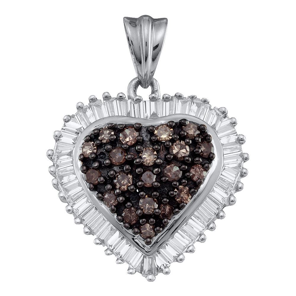 REF-40W4K- SKU: GD60462 ---- 1 CTW Cognac-brown Color Diamond Heart Cluster Pendant 10KT Yellow Gold