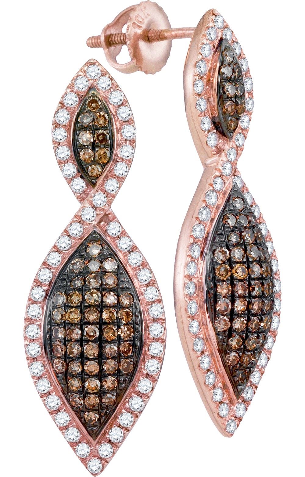 REF-64F4N- SKU: GD93914 ---- 1 CTW Cognac-brown Color Diamond Oval Dangle Earrings 10KT Rose Gold