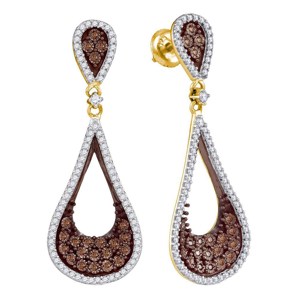 REF-75K2W- SKU: GD87230 ---- 1 CTW Cognac-brown Color Diamond Teardrop Dangle Earrings 10KT Yellow Gold