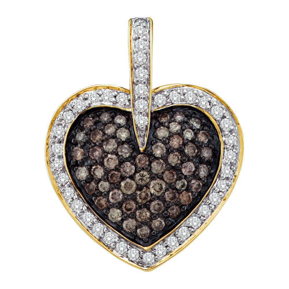 REF-115M9A ---- 1 CTW Cognac-brown Colored Diamond Heart Cluster Valentines Pendant 14K Yellow Gold - SKU: GD48484