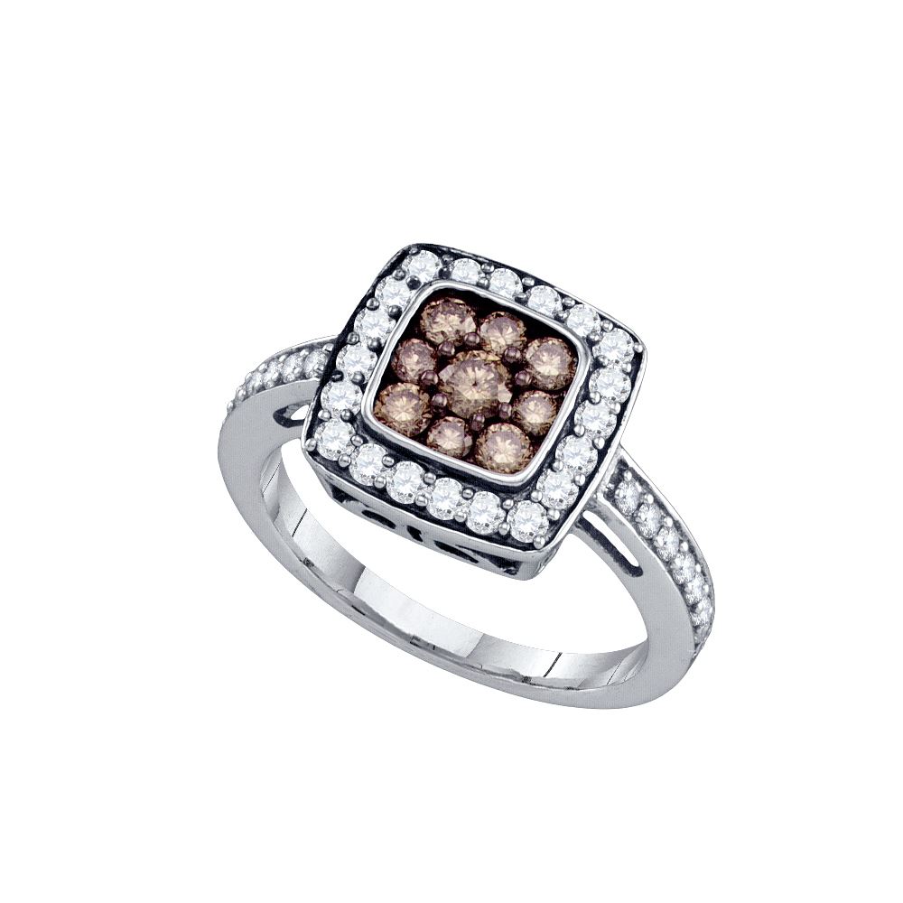 REF-66X2F ---- 1 CTW Cognac-brown Colored Diamond Square Cluster Ring 10K White Gold - SKU: GD72201
