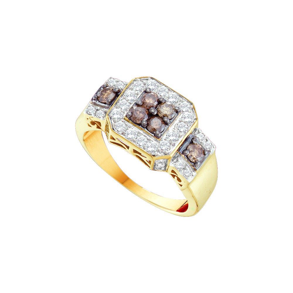 REF-99F9M ---- 1 CTW Cognac-brown Colored Diamond Square-shape Cluster Fine Ring 14K Yellow Gold - SKU: GD51712