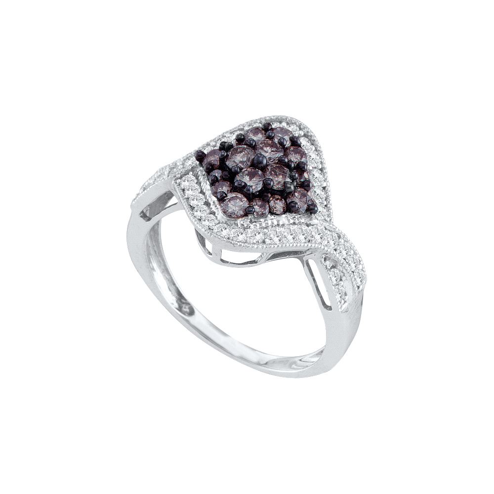 REF-66T2K ---- 1 CTW Cognac-brown Colored Natural Diamond Unique Cluster Ring 10K White Gold - SKU: GD58527