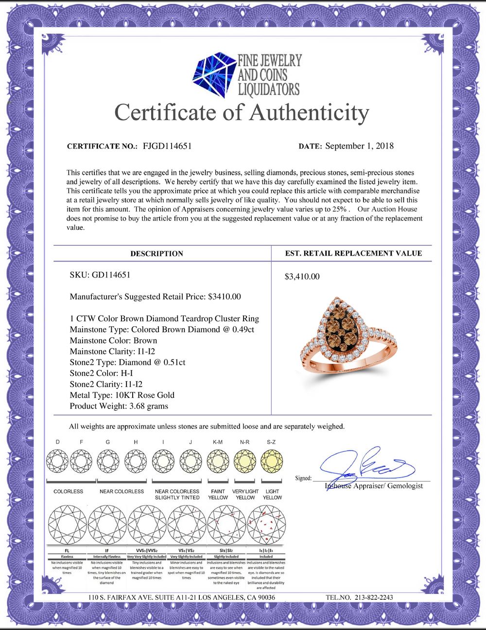 REF-87M2H- SKU: GD114651 ---- 1 CTW Color Brown Diamond Teardrop Cluster Ring 10KT Rose Gold