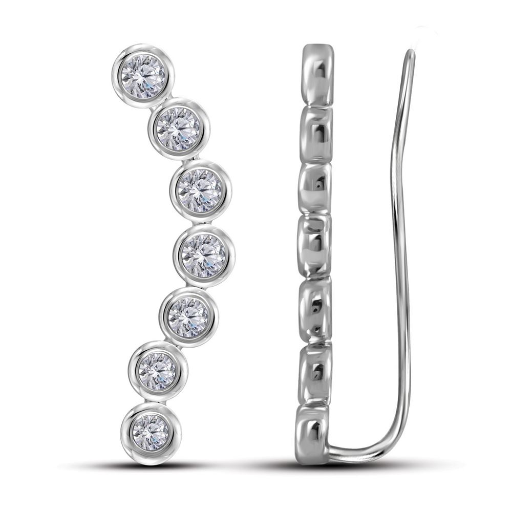 REF-89F9N- SKU: GD114832 ---- 1 CTW Diamond Bezel-set Climber Earrings 14KT White Gold