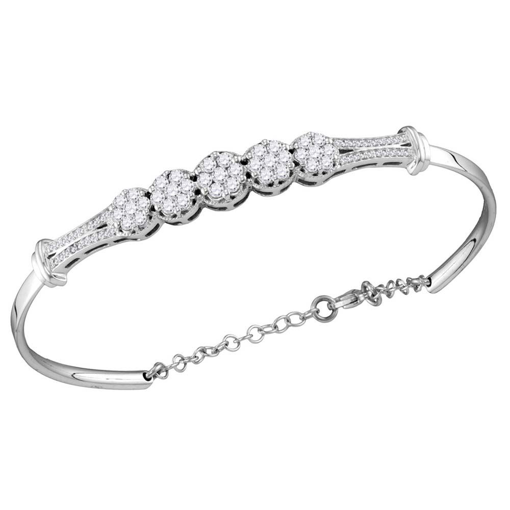REF-97F4N- SKU: GD114434 ---- 1 CTW Diamond Cluster Promise Bangle Bracelet 10KT White Gold