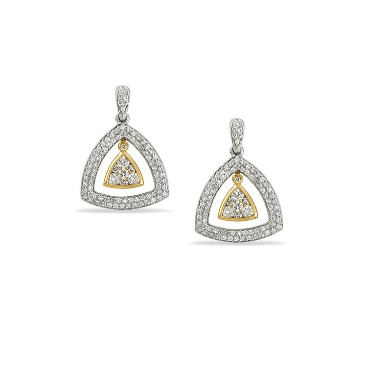 REF-90Y8X - JF345409 ---- 1 CTW White Round Diamond Earring 14K Two Tone Yellow Gold