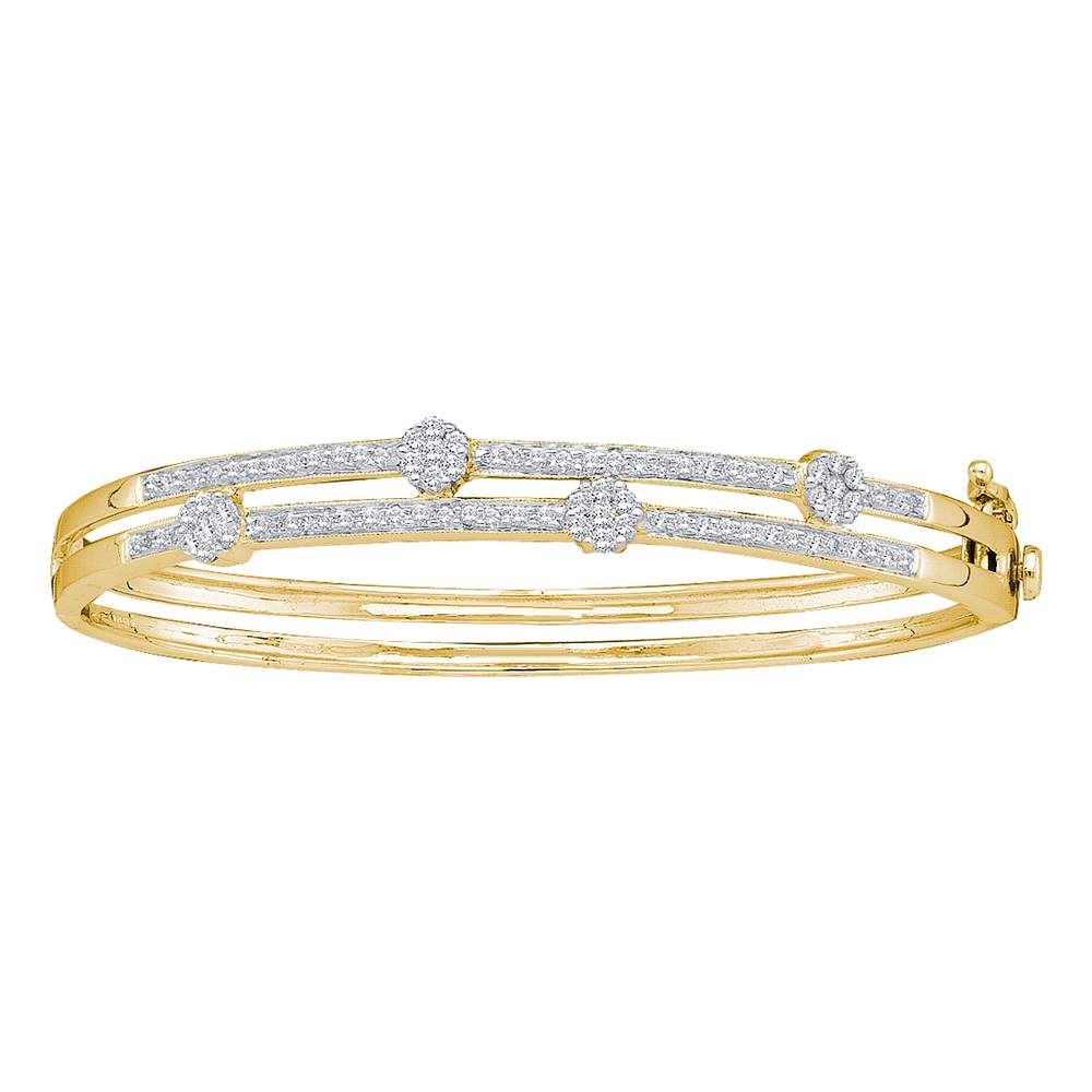 REF-165M2H- SKU: GD41248 ---- 1 CTW Diamond Flower Cluster Bangle Bracelet 14KT Yellow Gold