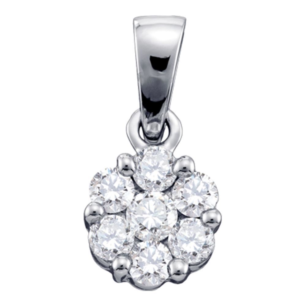 REF-104N9F- SKU: GD13205 ---- 1 CTW Diamond Flower Cluster Pendant 14k White Gold