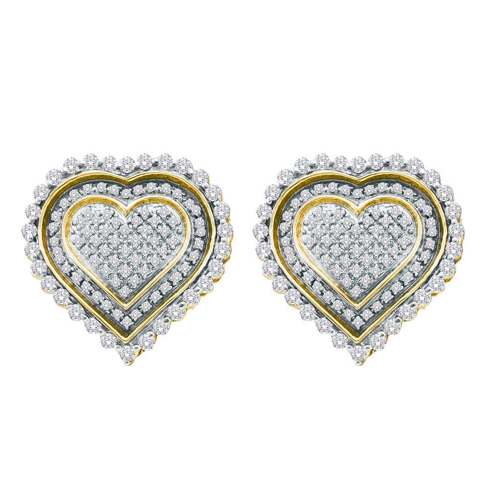 REF-67M4H- SKU: GD55019 ---- 1 CTW Diamond Heart Screwback Cluster Earrings 10KT Yellow Gold