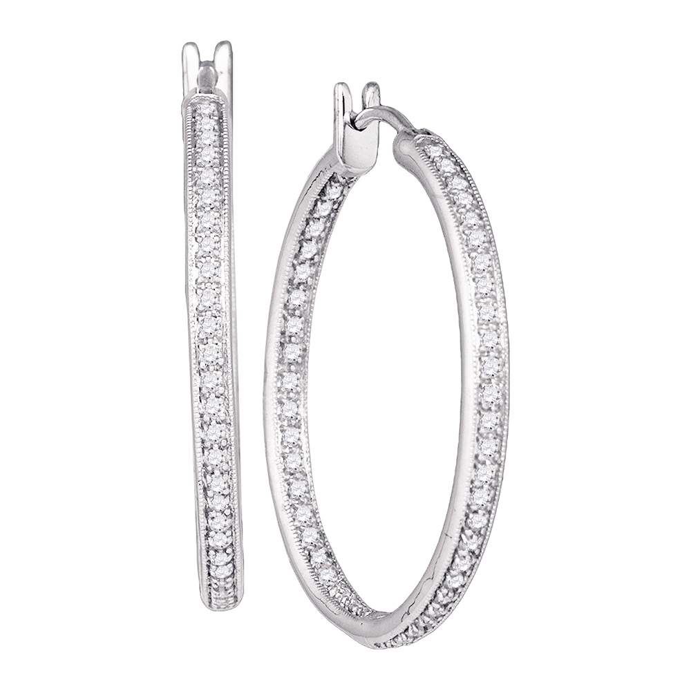 REF-119W9K- SKU: GD49800 ---- 1 CTW Diamond In/Out Hoop Earrings 14KT White Gold