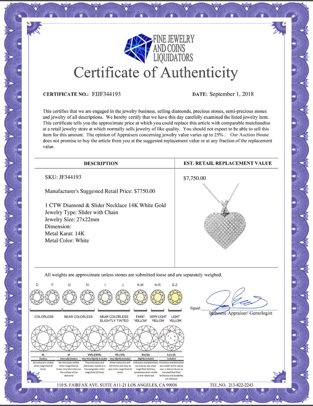 REF-100N6Y - JF344193 ---- 1 CTW White Round Diamond Necklace 14K White Gold