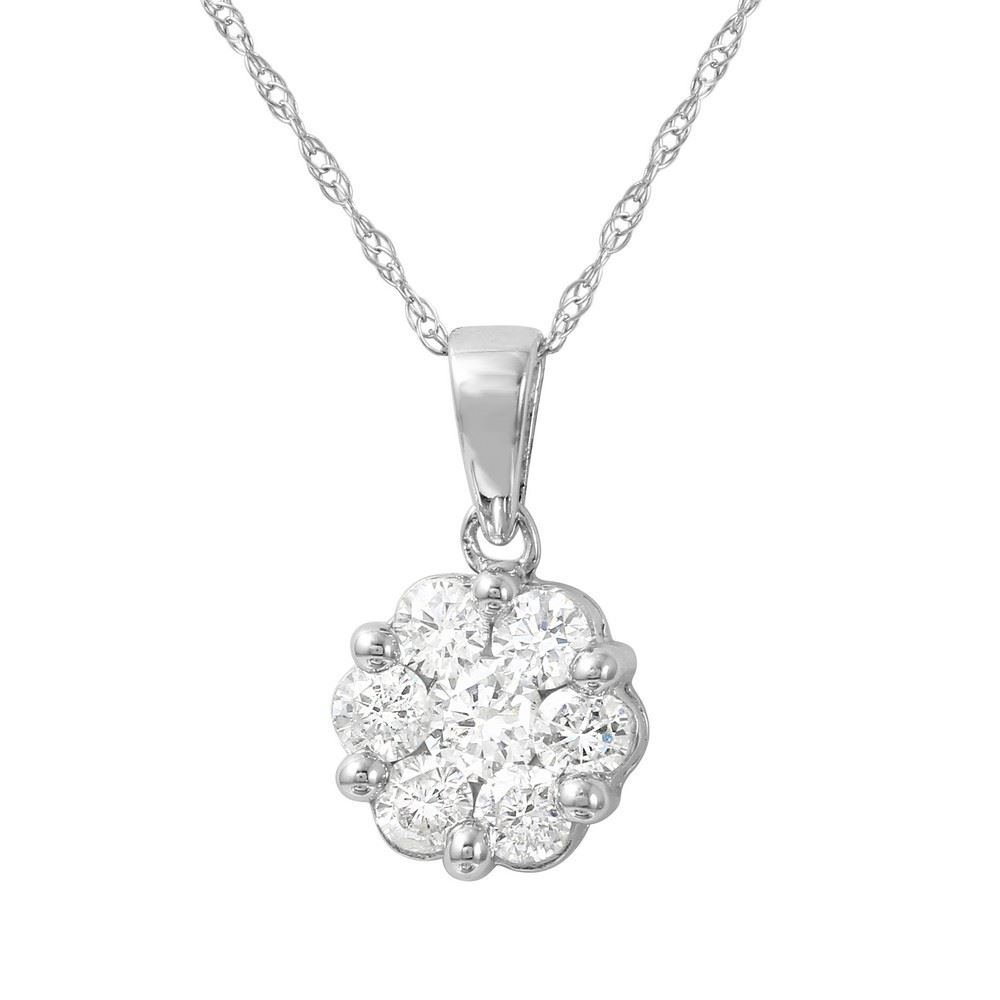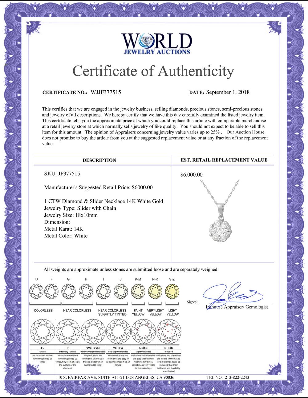 REF-78X5R - JF377515 ---- 1 CTW White Round Diamond Necklace 14K White Gold