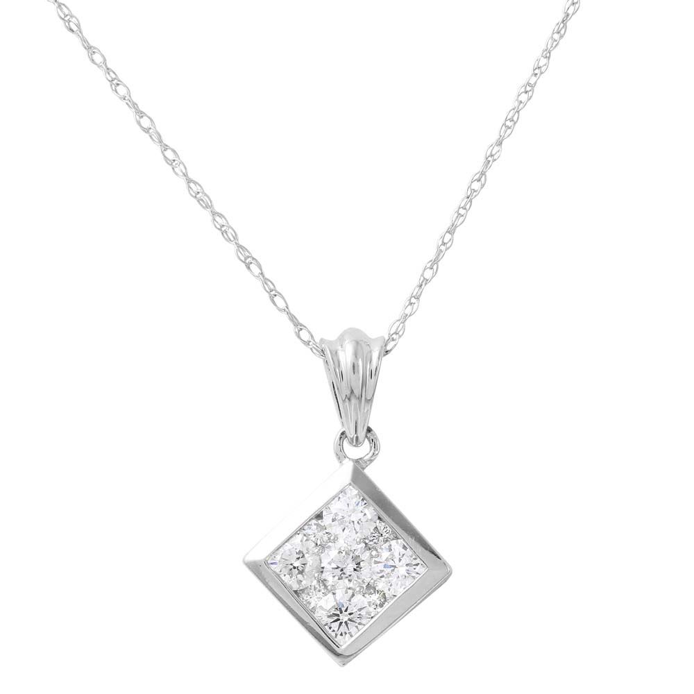 REF-92M6F - JF344520 ---- 1 CTW White Round Diamond Necklace 14K White Gold