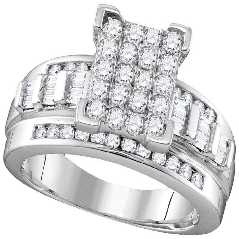 REF-68M9H- SKU: GD111688 ---- 1 CTW Diamond Rectangle Cluster Bridal Engagement Ring 10KT White Gold