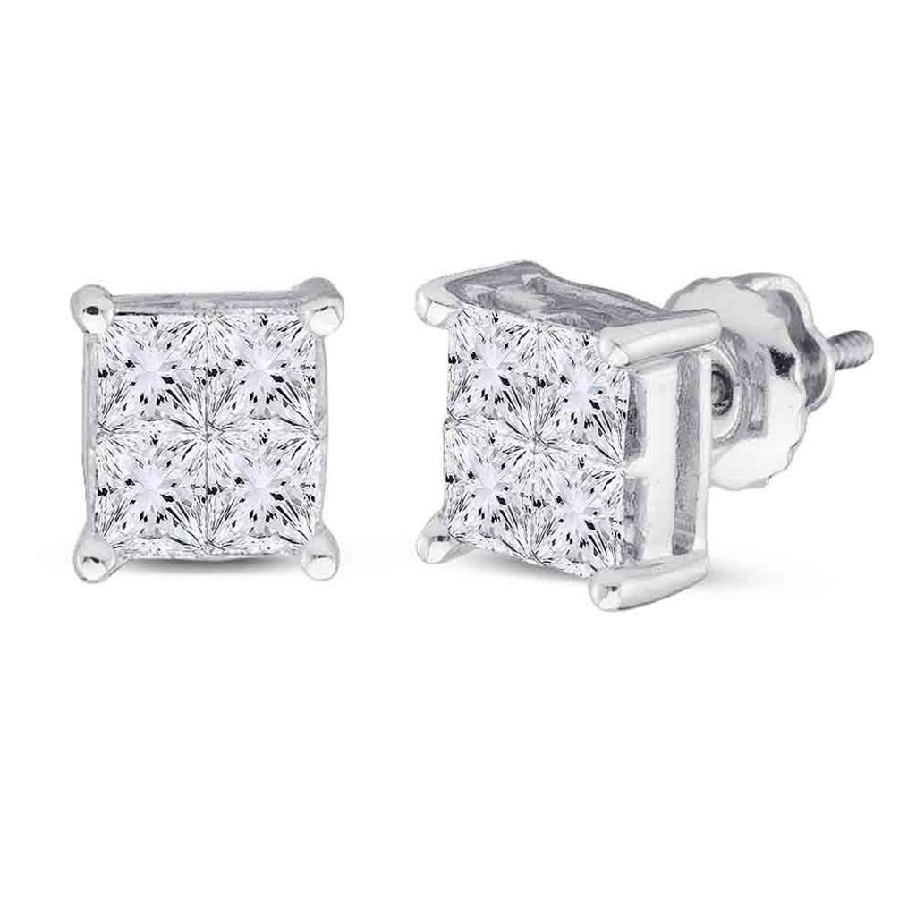 1 CTW Diamond Square Cluster Stud Earrings 14kt White Gold - SKU: GD18563