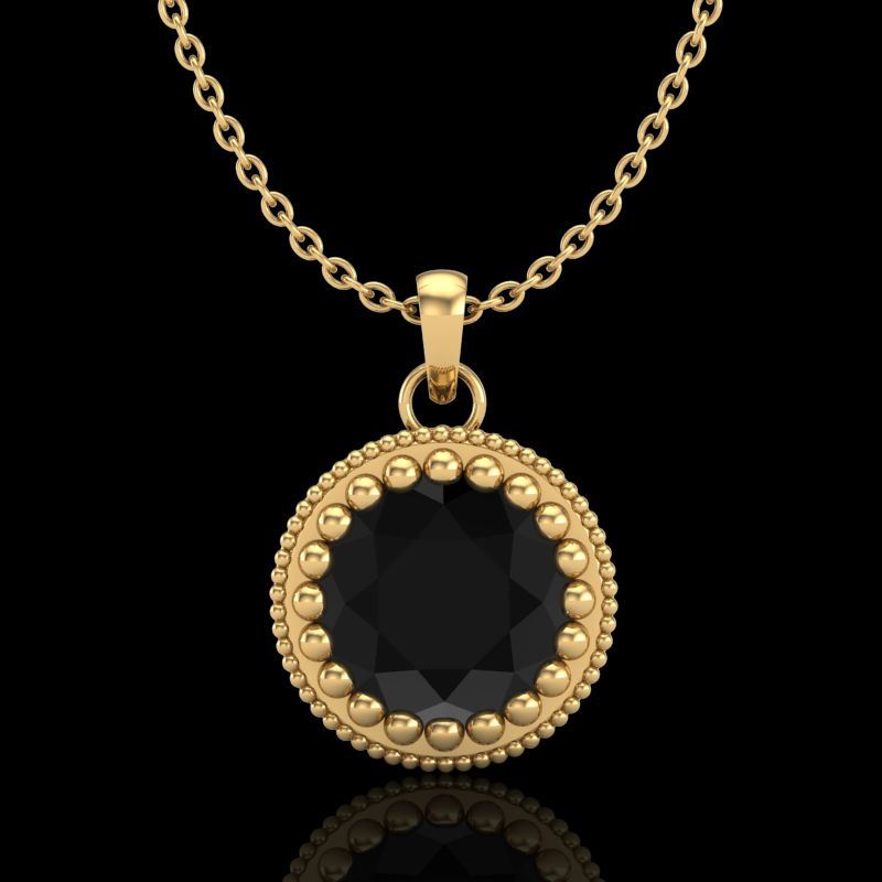 REF-50W9F -37487 ---- 1 CTW Fancy Black Diamond Solitaire Art Deco Stud Necklace 18K Yellow Gold ---- Luxury Designer Brand NECKLACE Appraised at $3,100 Certificate Number US37487 18k Yellow gold, NECKLACE Size is 16 Inches, NECKLACE measuring approx. Uniform, weighing in total approx. 3 grams. Made in the USA and is stamped 18k, Main stone 1 carat total weight containing 1 pieces of Black Opaque color with VS quality Round shape cut Diamond , Stone #2 carat total weight containing pieces of color with quality shape cut