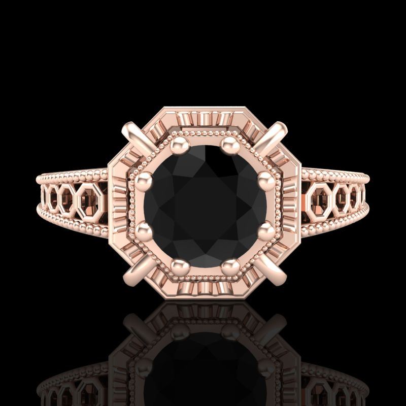 REF-100F2N -37444 ---- 1 CTW Fancy Black Diamond Solitaire Engagement Art Deco Ring 18K Rose Gold ---- Luxury Designer Brand Ring Appraised at $6,600 Certificate Number US37444 18k Rose gold, Ring Size is 7, Ring measuring approx. Uniform, weighing in total approx. 6 grams. Made in the USA and is stamped 18k, Main stone 1 carat total weight containing 1 pieces of Black Opaque color with VS quality Round shape cut Diamond , Stone #2 carat total weight containing pieces of color with quality shape cut