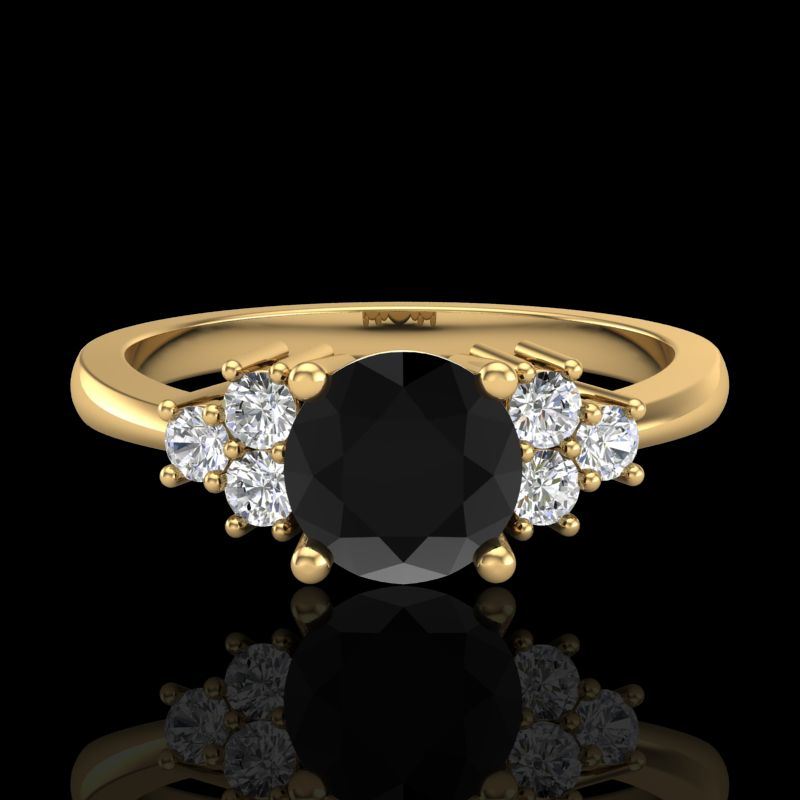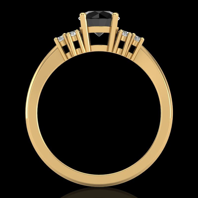 REF-80A2X -37592 ---- 1 CTW Fancy Black Diamond Solitaire Engagement Classic Ring 18K Yellow Gold ---- Luxury Designer Brand Ring Appraised at $4,850 Certificate Number US37592 18k Yellow gold, Ring Size is 7, Ring measuring approx. Uniform, weighing in total approx. 4.5 grams. Made in the USA and is stamped 18k, Main stone 0.8 carat total weight containing 1 pieces of Black Opaque color with VS quality Round shape cut Diamond , Stone #2 0.2 carat total weight containing 6 pieces of H-I color with VS/SI quality Round shape cut Diamond