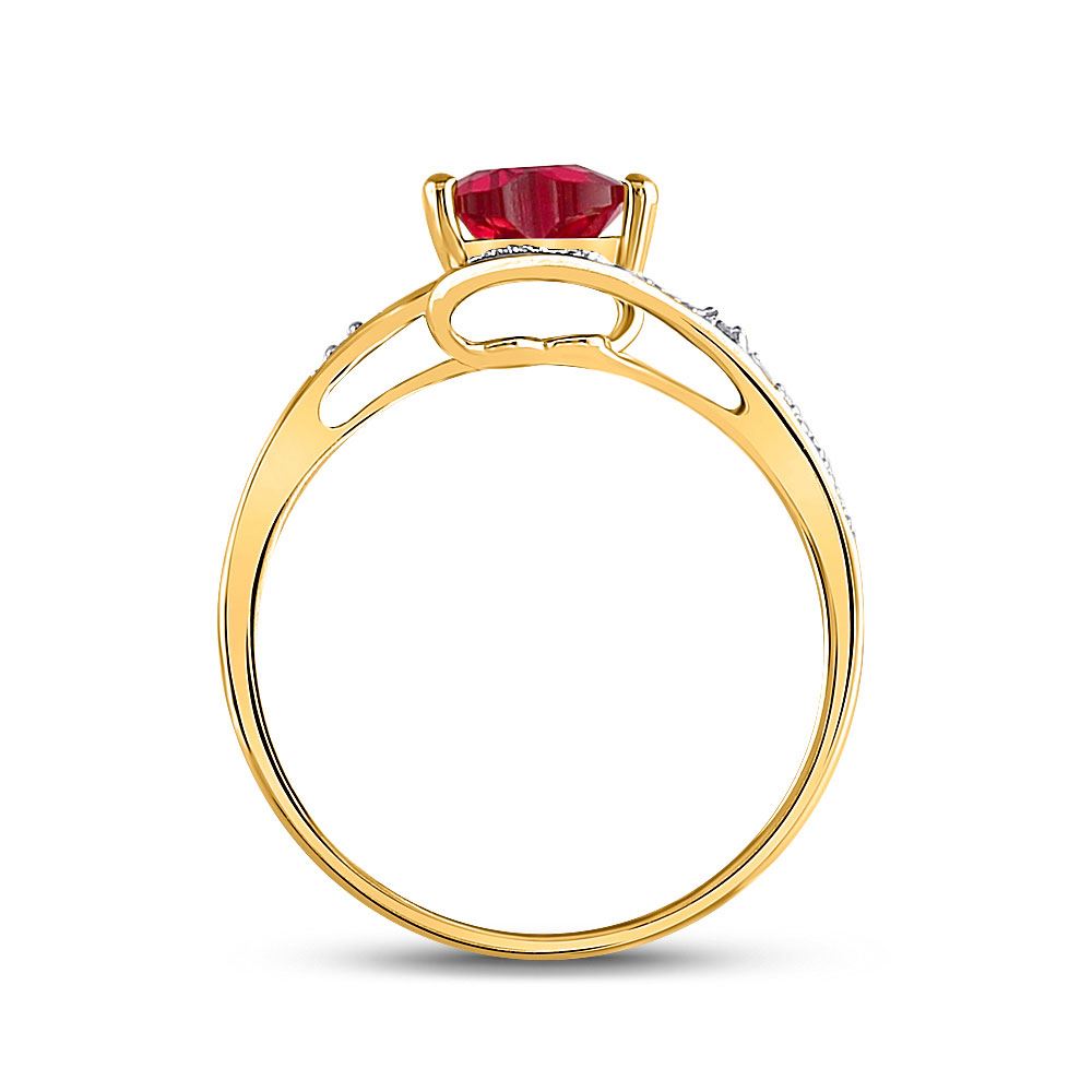 REF-9T6K ---- 1 CTW Heart Lab-Created Ruby Solitaire Diamond-accent Bypass Ring 10kt Yellow Gold
