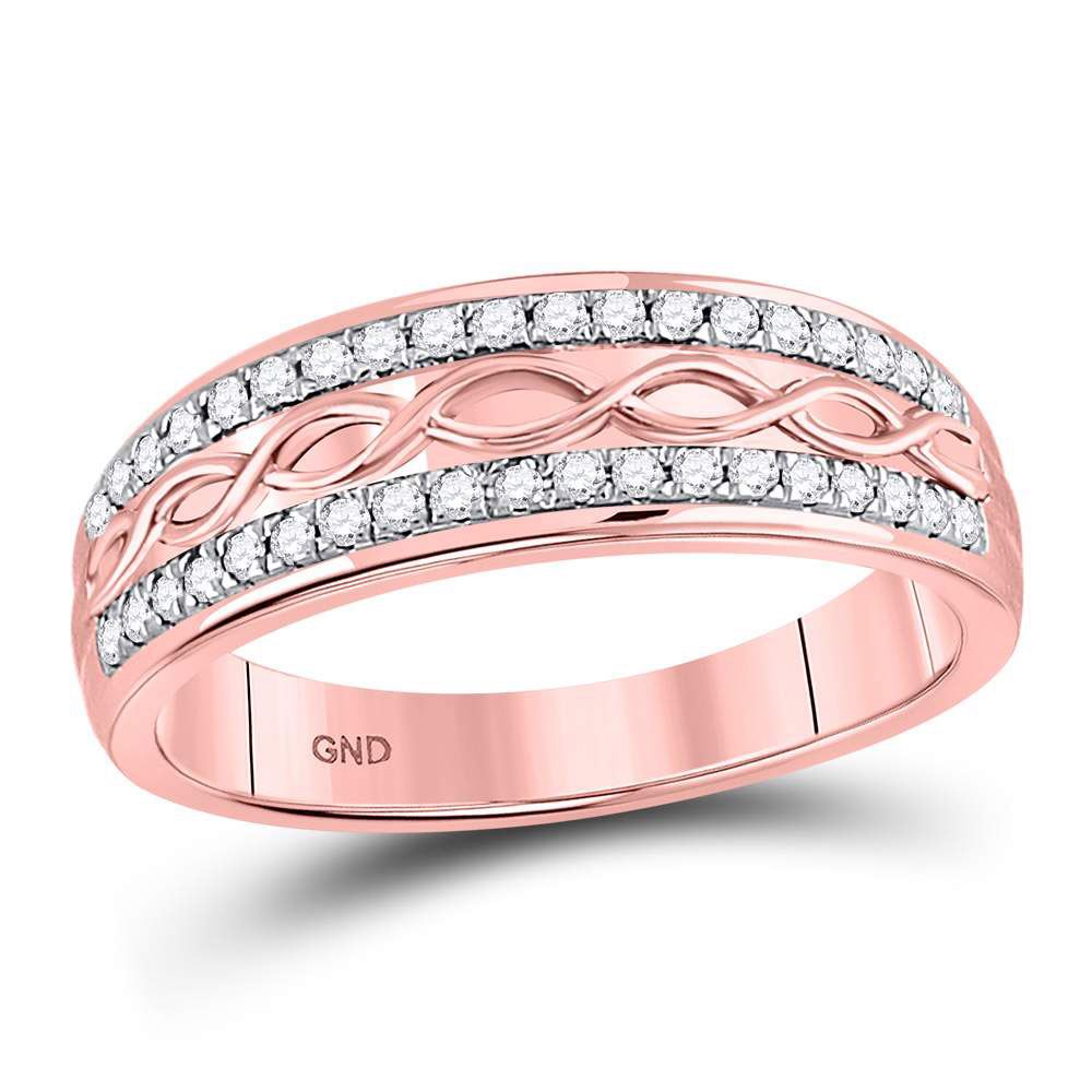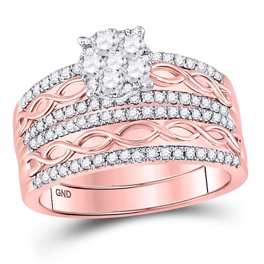 10kt Rose Gold His & Hers Round Diamond Cluster Twist Matching Bridal Wedding Ring Band Set 1.00 Cttw