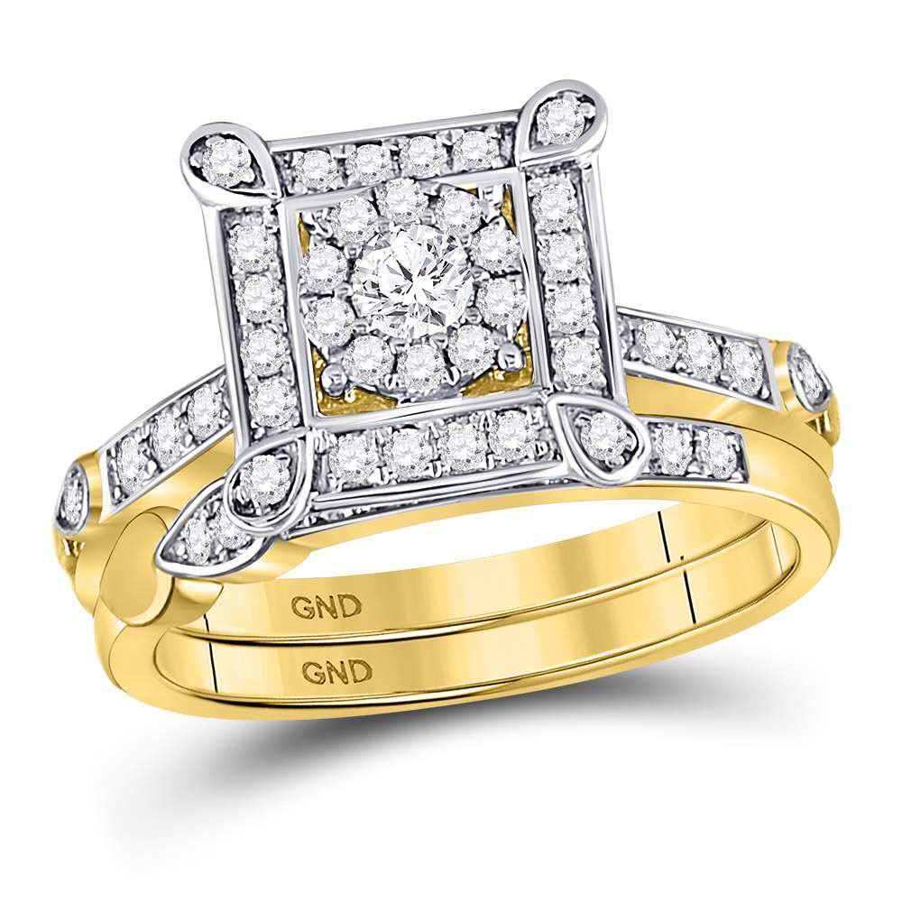 14kt Yellow Gold His & Hers Round Diamond Solitaire Matching Bridal Wedding Ring Band Set 1.00 Cttw