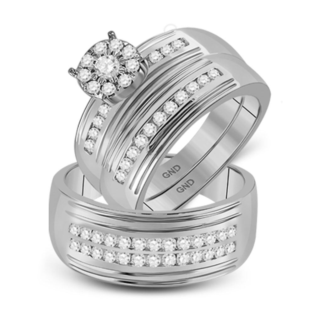 REF-88M5F - 1 CTW His Hers Round Diamond Solitaire Matching Wedding Set 10kt White Gold - REF-88M5F