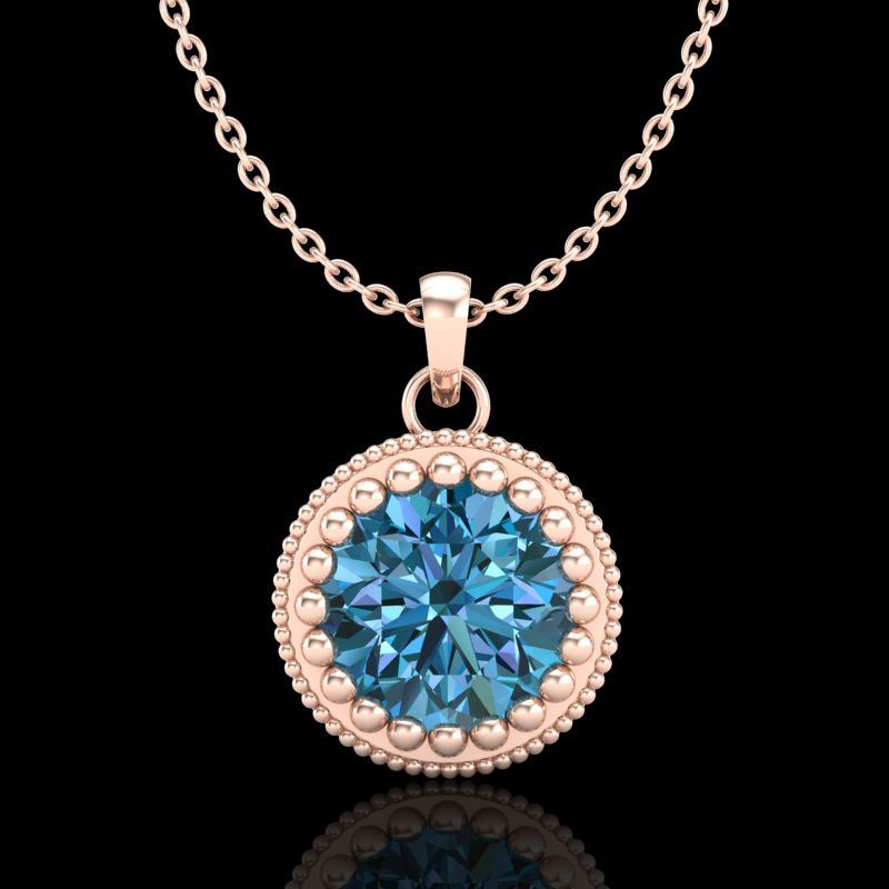 37489 - REF-158V2Y ---- 1 CTW Intense Blue Diamond Solitaire Art Deco Stud Necklace 18K Rose Gold ---- Luxury Designer Brand NECKLACE Appraised at $9,550 Certificate Number US37489 18k Rose gold, NECKLACE Size is 16 Inches, NECKLACE measuring approx. Uniform, weighing in total approx. 3 grams. Made in the USA and is stamped 18k, Main stone 1 carat total weight containing 1 pieces of Intense Fancy Blue color with SI quality Round shape cut Diamond , Stone #2 carat total weight containing pieces of color with quality shape cut