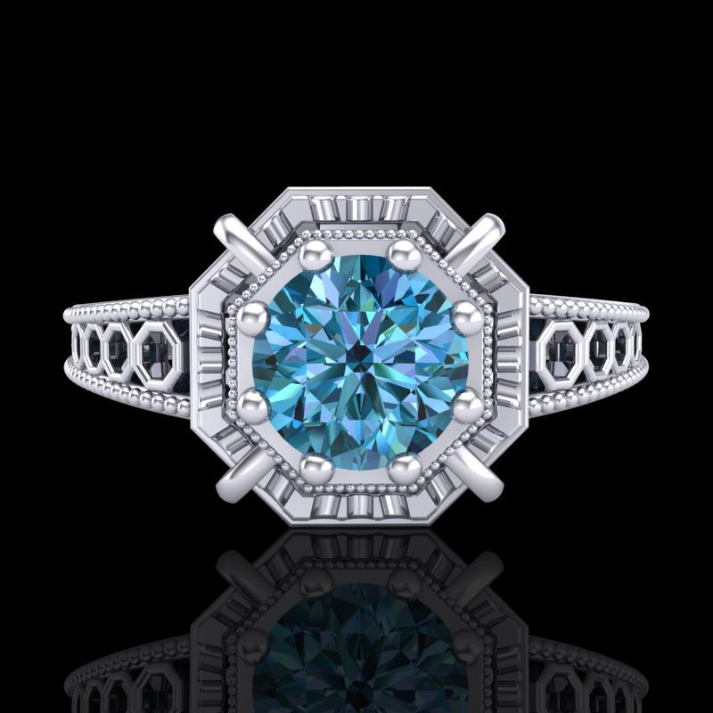 REF-200M2H -37446 ---- 1 CTW Intense Blue Diamond Solitaire Engagement Art Deco Ring 18K White Gold ---- Luxury Designer Brand Ring Appraised at $12,100 Certificate Number US37446 18k White gold, Ring Size is 7, Ring measuring approx. Uniform, weighing in total approx. 6 grams. Made in the USA and is stamped 18k, Main stone 1 carat total weight containing 1 pieces of Intense Fancy Blue color with SI quality Round shape cut Diamond , Stone #2 carat total weight containing pieces of color with quality shape cut