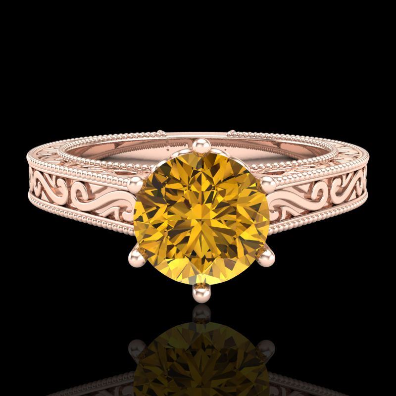 REF-236A4X -37575 ---- 1 CTW Intense Fancy Yellow Diamond Engagement Art Deco Ring 18K Rose Gold ---- Luxury Designer Brand Ring Appraised at $15,600 Certificate Number US37575 18k Rose gold, Ring Size is 7, Ring measuring approx. Uniform, weighing in total approx. 10 grams. Made in the USA and is stamped 18k, Main stone 1 carat total weight containing 1 pieces of Intense Fancy Yellow color with SI quality Round shape cut Diamond , Stone #2 carat total weight containing pieces of color with quality shape cut