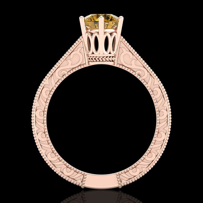 REF-236A4X -37575 ---- 1 CTW Intense Fancy Yellow Diamond Engagement Art Deco Ring 18K Rose Gold ---- Luxury Designer Brand Ring Appraised at $15,600 Certificate Number US37575 18k Rose gold, Ring Size is 7, Ring measuring approx. Uniform, weighing in total approx. 10 grams. Made in the USA and is stamped 18k, Main stone 1 carat total weight containing 1 pieces of Intense Fancy Yellow color with SI quality Round shape cut Diamond , Stone #2 carat total weight containing pieces of color with quality shape cut