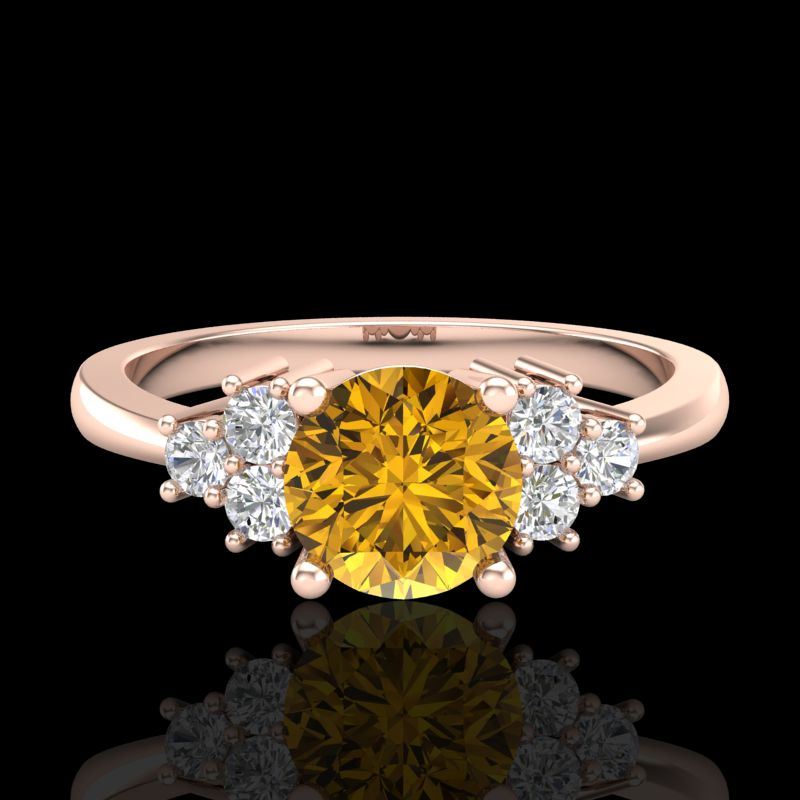 REF-130H9A -37596 ---- 1 CTW Intense Fancy Yellow Diamond Engagement Classic Ring 18K Rose Gold ---- Luxury Designer Brand Ring Appraised at $7,900 Certificate Number US37596 18k Rose gold, Ring Size is 7, Ring measuring approx. Uniform, weighing in total approx. 4.5 grams. Made in the USA and is stamped 18k, Main stone 0.8 carat total weight containing 1 pieces of Intense Fancy Yellow color with SI quality Round shape cut Diamond , Stone #2 0.2 carat total weight containing 6 pieces of H-I color with VS/SI quality Round shape cut Diamond