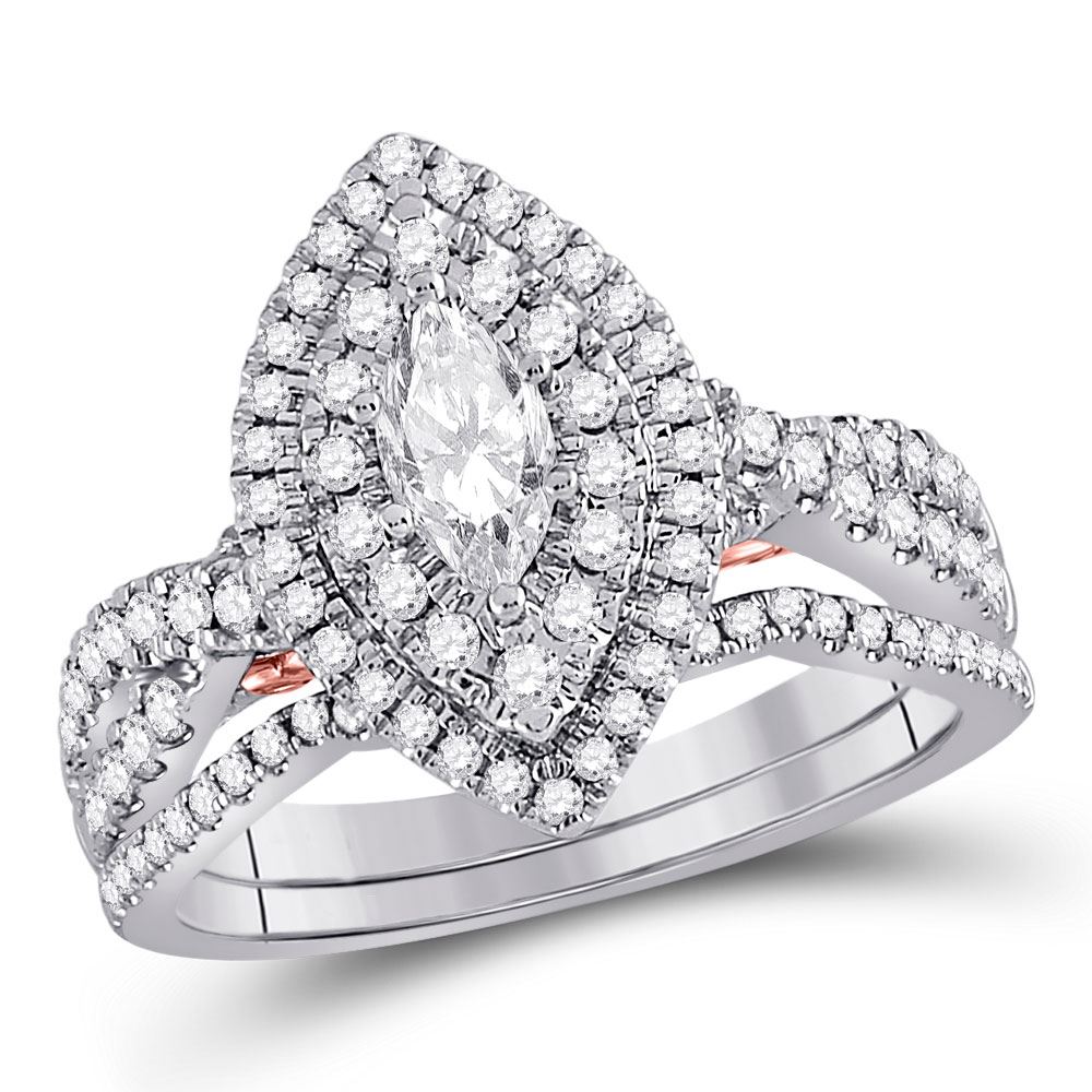 14kt Two-tone Gold Womens Marquise Diamond Bridal Wedding Engagement Ring Band Set 1.00 Cttw (Certified)