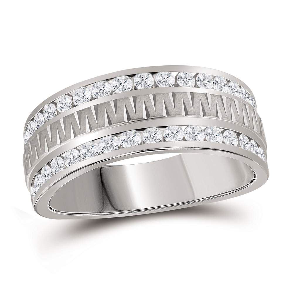 REF-132M2H- SKU: GD114550 ---- 1 CTW Mens Channel-set Diamond Grecco Textured Double Row Ring 14KT White Gold