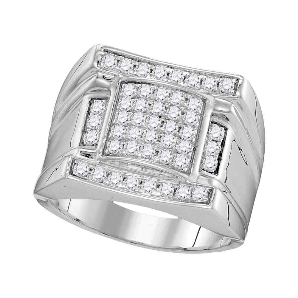 REF-71X3Y- SKU: GD110123 ---- 1 CTW Mens Diamond Arched Square Cluster Ring 10KT White Gold