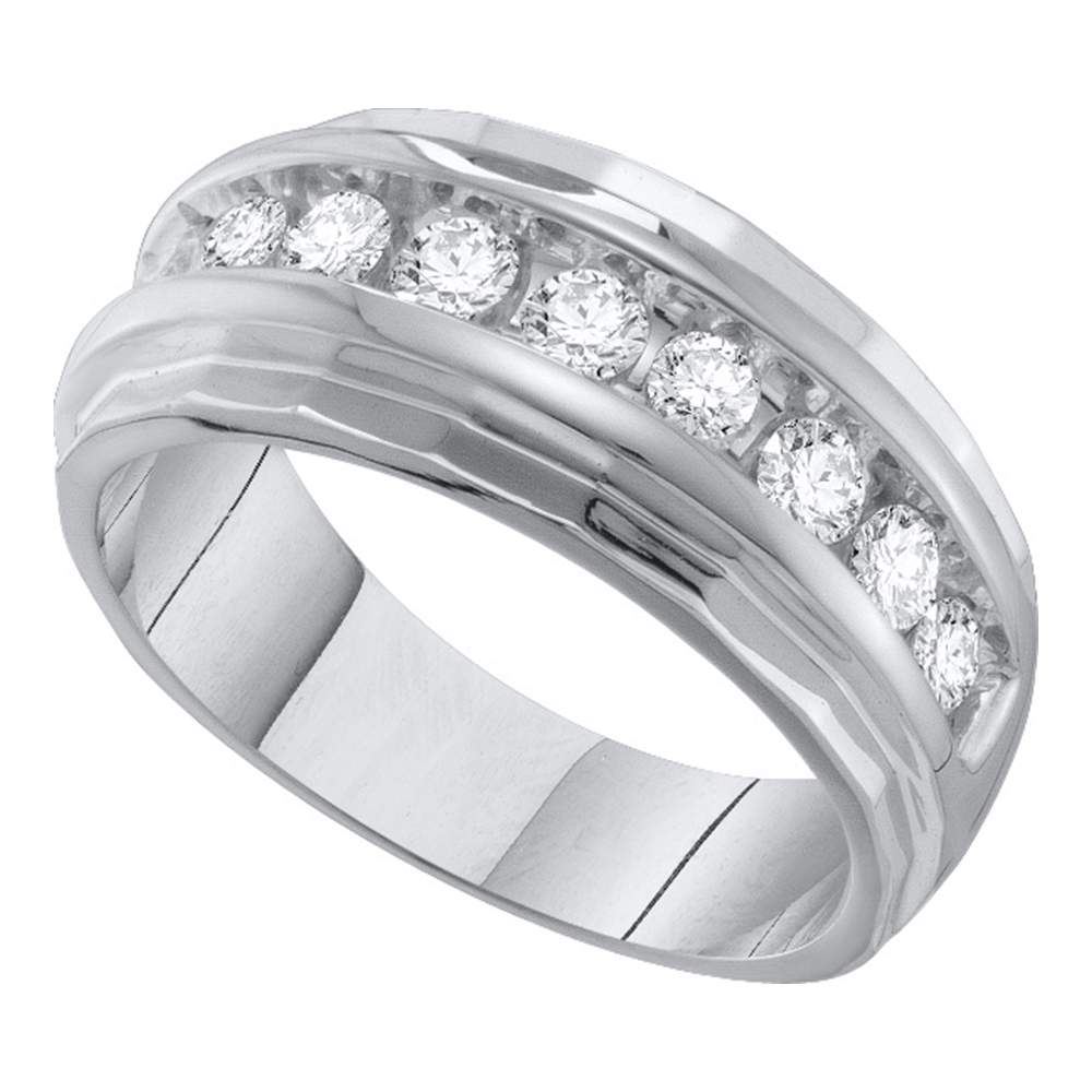 REF-104W9K- SKU: GD55686 ---- 1 CTW Mens Diamond Ridged Edges Single Row Wedding Ring 10KT White Gold