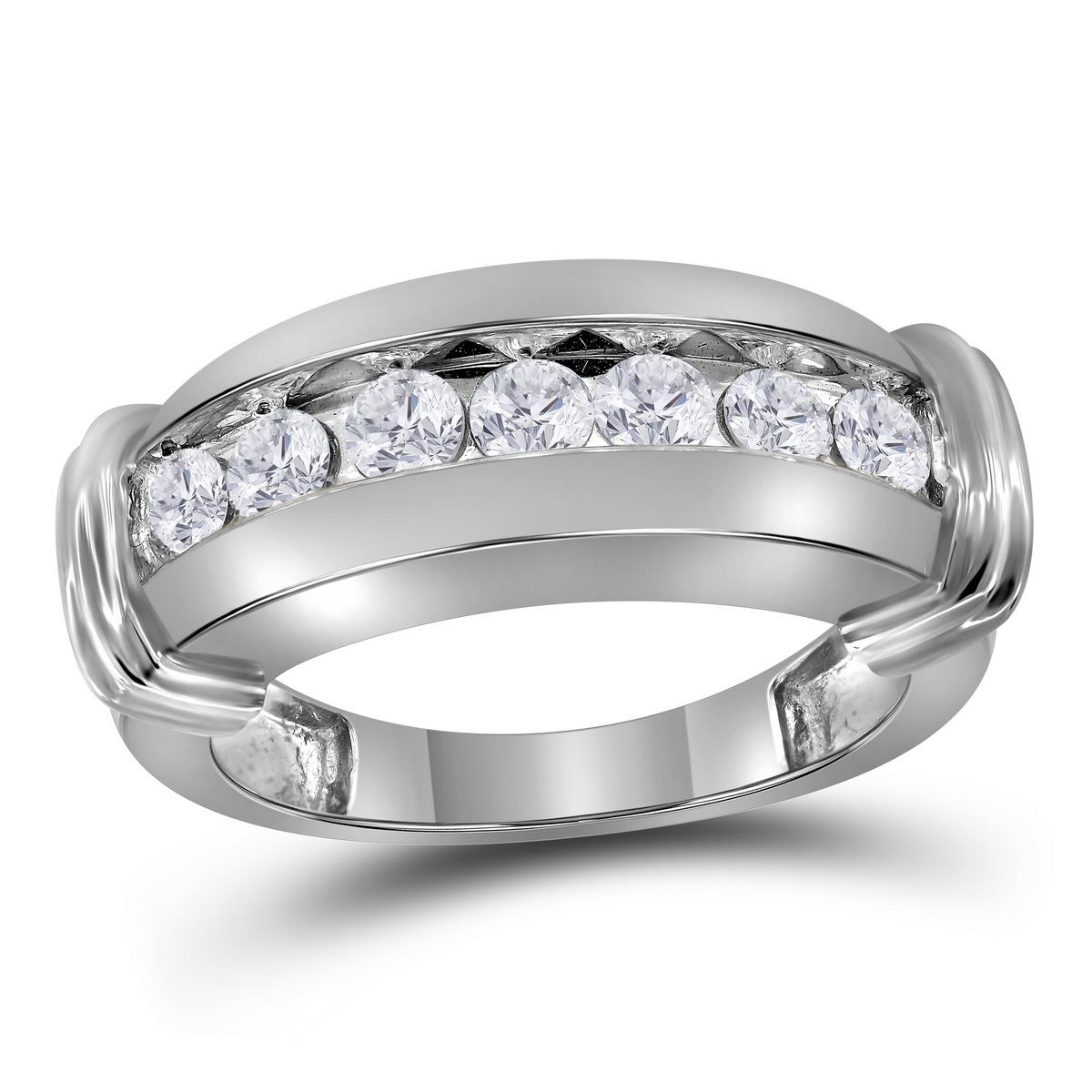 REF-146W9K- SKU: GD14221 ---- 1 CTW Mens Diamond Single Row Wedding Ring 14KT White Gold