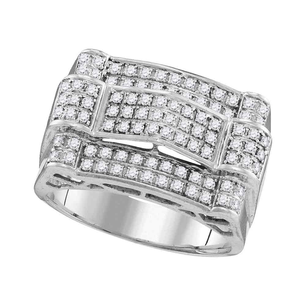 REF-67H4M- SKU: GD109927 ---- 1 CTW Mens Diamond Symmetrical Arched Cluster Ring 10KT White Gold