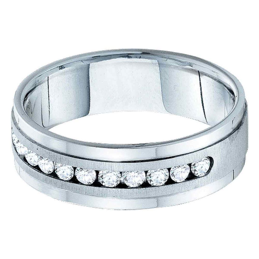 14kt White Gold Mens Machine Set Round Diamond Wedding Band Ring 1.00 Cttw