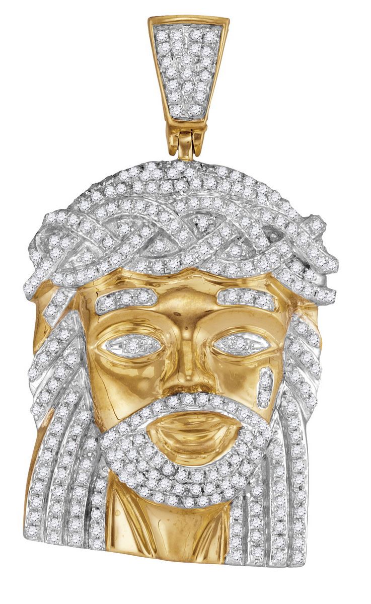 REF-99X9F ---- 1 CTW Mens Natural Diamond Jesus Christ Messiah Charm Pendant 10K Yellow Gold - SKU: GD94533