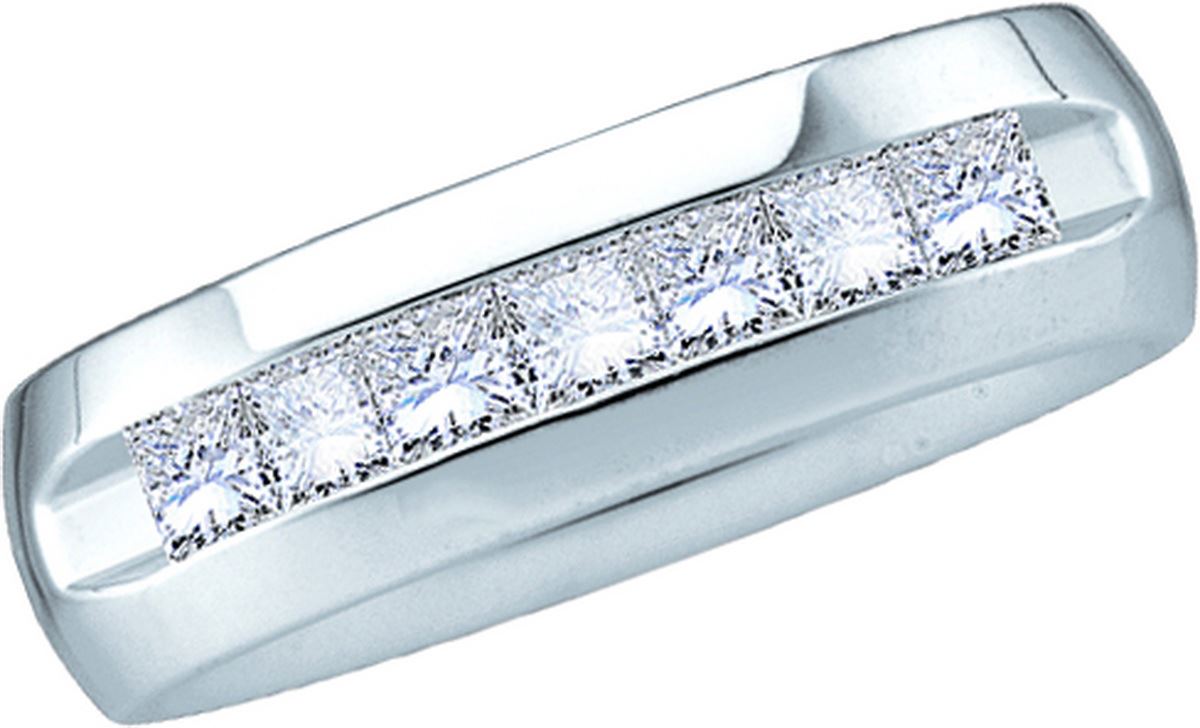 REF-259W9H ---- 1 CTW Mens Princess Natural Channel-set Diamond Anniversary Band 14K White Gold - SKU: GD40789