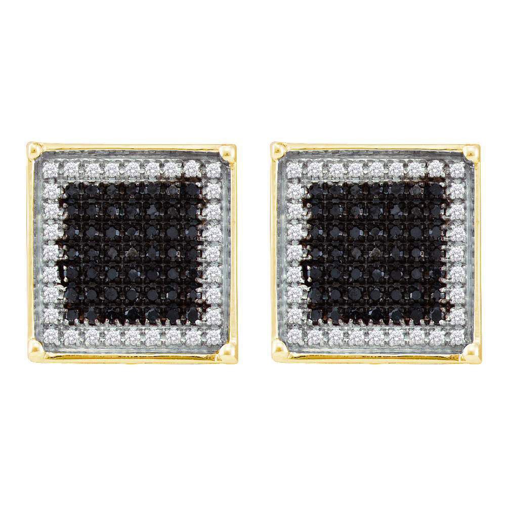 REF-34F3W - 1 CTW Mens Round Black Color Enhanced Diamond Square Earrings 10kt Yellow Gold - REF-34F3W